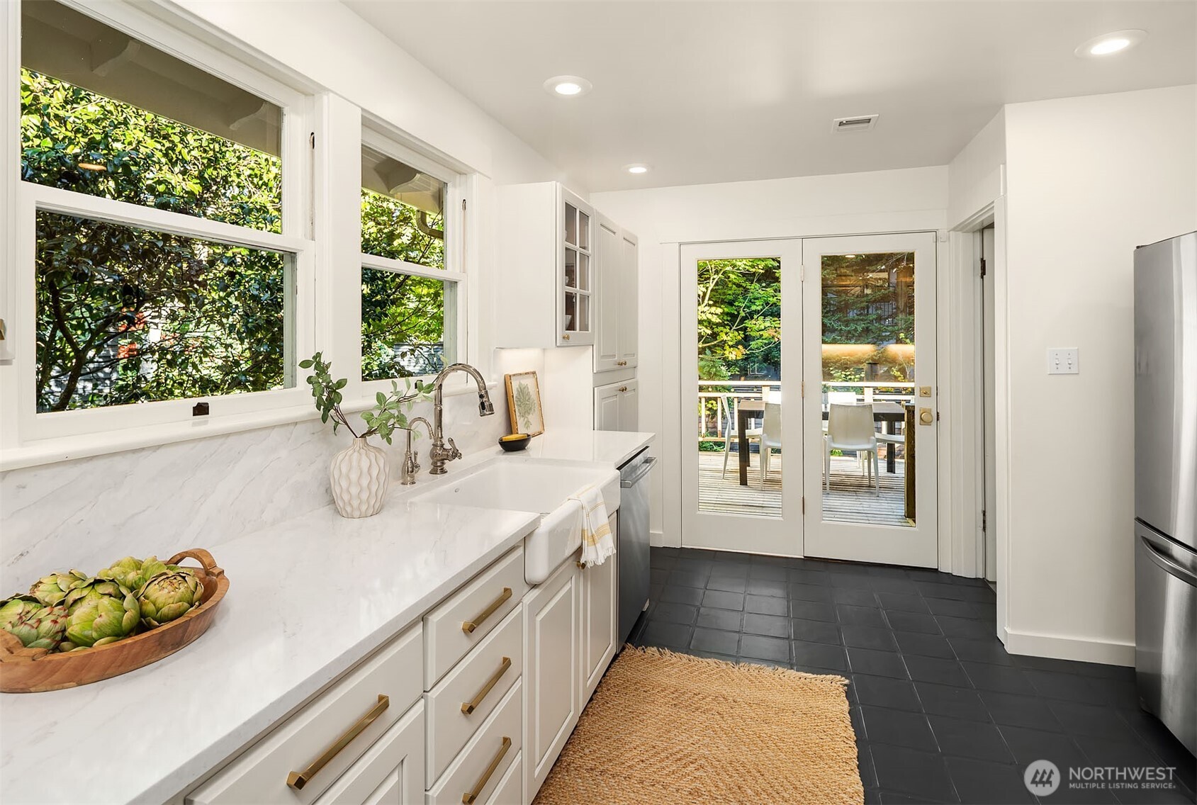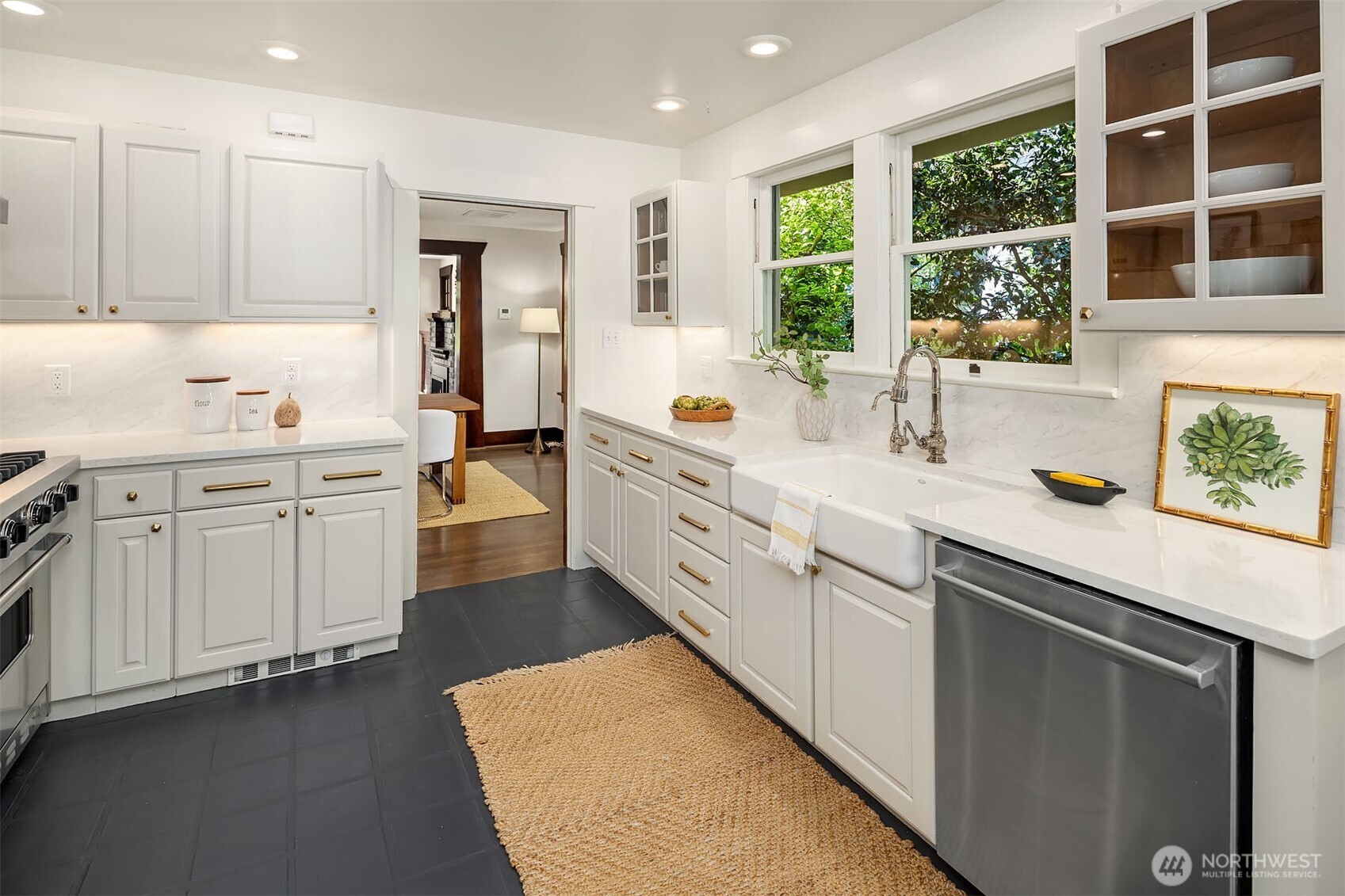 Impeccable 1908 Craftsman in the heart of Madrona, beautifully renovated for modern living! This jewel box offers single-level living with warm & inviting interiors. Every inch has been thoughtfully updated, preserving original charm (fir woodwork, built-ins, divided-lite windows & oak floors) while adding modern luxuries: a gourmet kitchen with Viking range & quartz counters, designer baths with heated floors & fully updated systems including AC! The finished lower level features a family room, guest suite, & laundry while the converted attic offers flexible space for work or play. Enjoy the sunny covered porch, private back yard, abundant parking + detached garage. Unbeatable walkability--steps to Madrona cafes, shops & parks! Exceptional!
