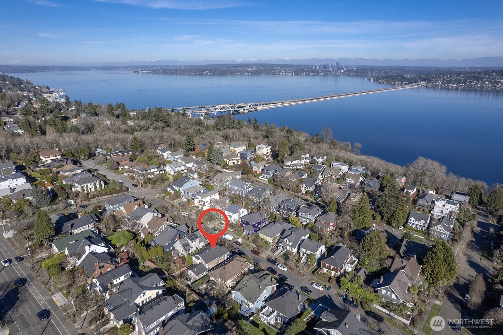 Modern Craftsman with stunning views of Lake Wash, the Cascades, and Mt. Rainier. Open floor plan makes this a wonderful home for entertaining. Quality finishes and improvements throughout. Just refinished Brazilian cherry hardwood floors & new carpet. Spacious kitchen with Viking range and fridge, Bosch d/w, large island, granite counters, and a barrel vaulted ceiling. Primary suite includes an expansive view deck, a luxurious bathroom with heated travertine flooring, a soaking tub, oversized shower & dual vanities. A/C, a second br and 3/4 bath w/heated flooring, and a washer/dryer complete the 2nd floor. Third br/office and full bath on the main. Lower level fourth bedroom, full bath, laundry room, and wine cellar. 1-car attached garage.